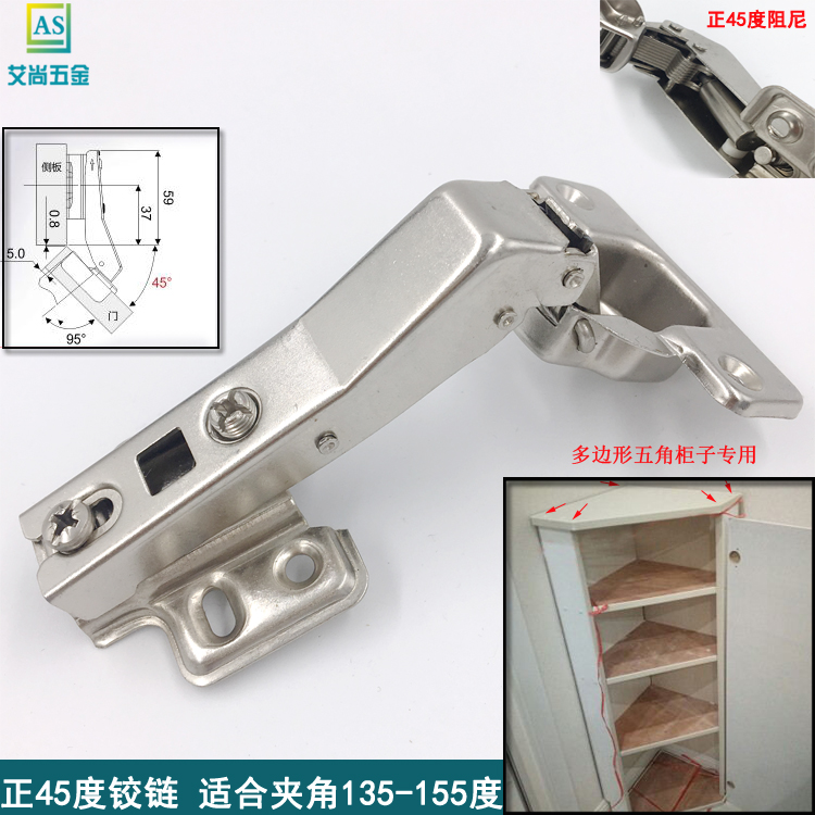 Positive and negative 30 degrees 45 degrees hydraulic buffer special profiled hinge triangular integral cabinet pentagonal integral cabinet special door hinge hinge