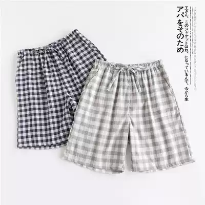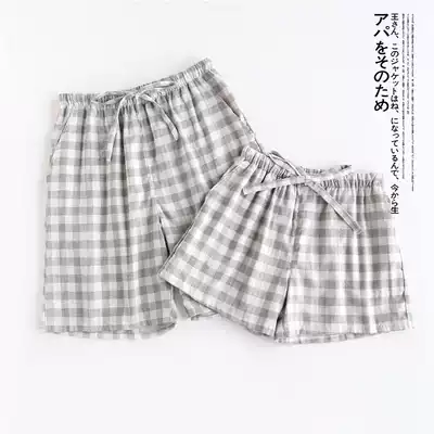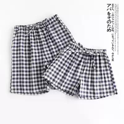 Couple shorts thin plaid pajama pants women Summer cotton double gauze men's five-point pants without printing casual home pants