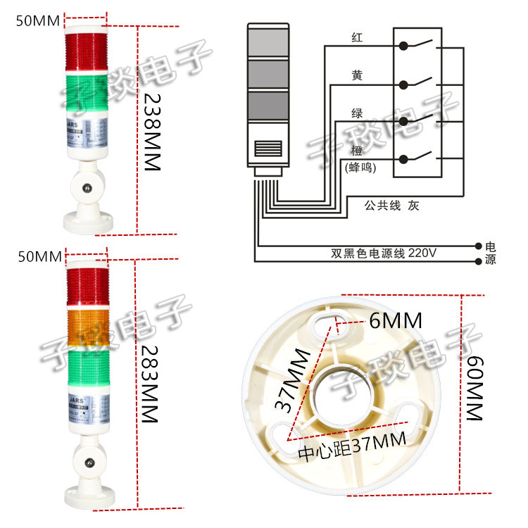LED three-color warning light 220V-color machine tool signal lamp alarm light folding and rotating multilayer tower lamp siren