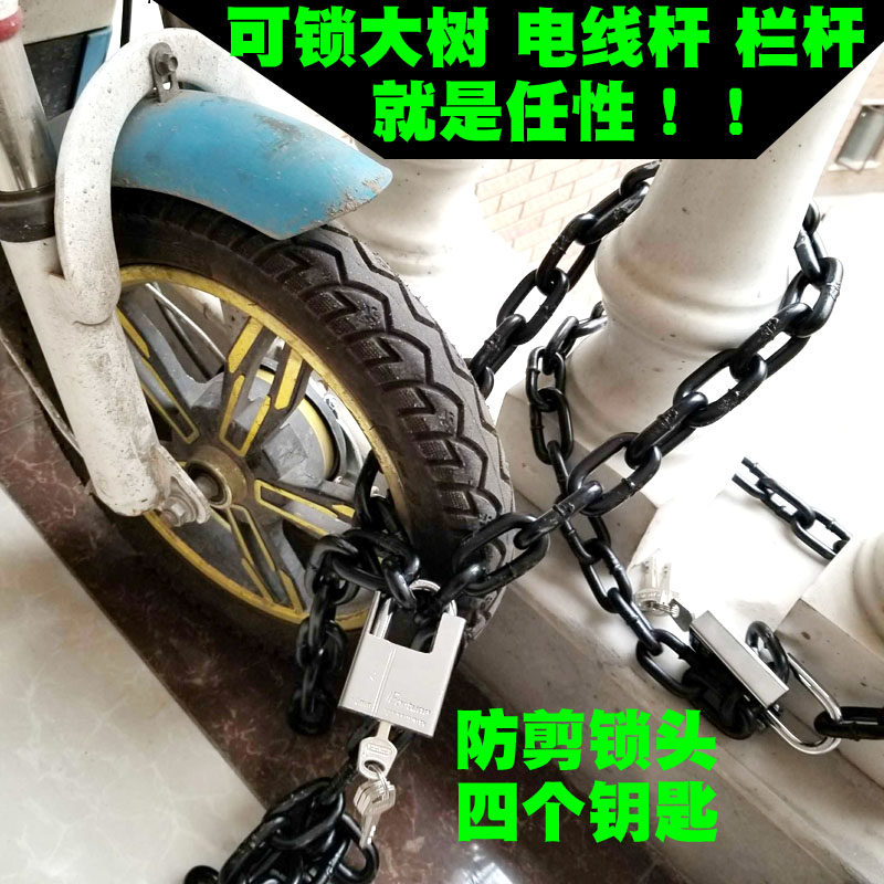 Chain lock iron chain lock riding universal lengthened coarse welding anti-shearing burglar-proof electric vehicle tricycle lock 8 0mm