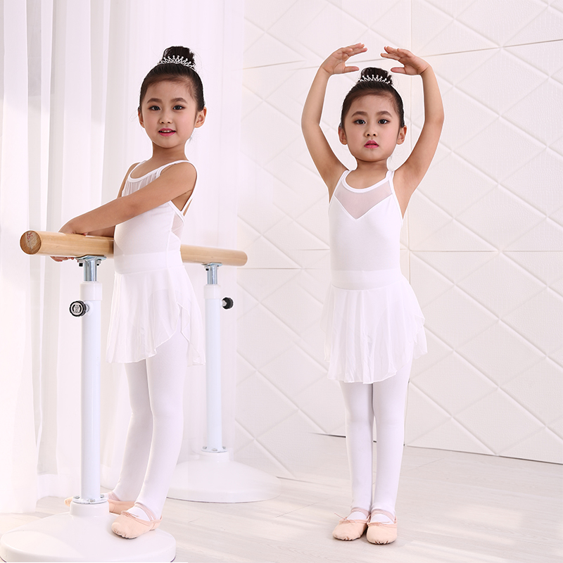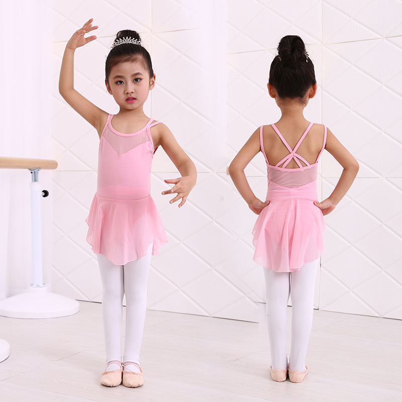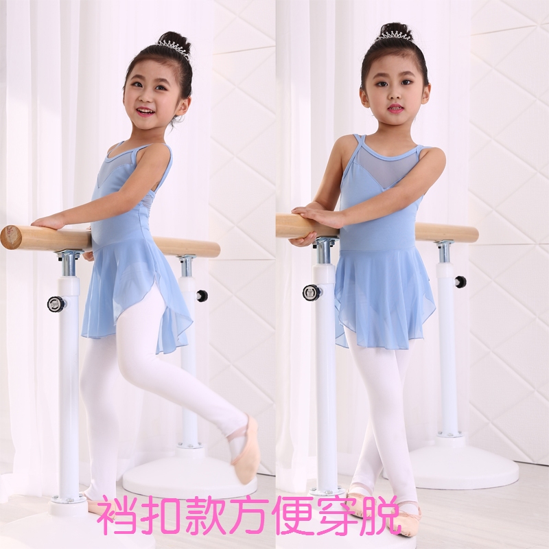 Children's dance training clothes girls summer cotton gym clothes children's sky blue sling dress pink ballet clothes