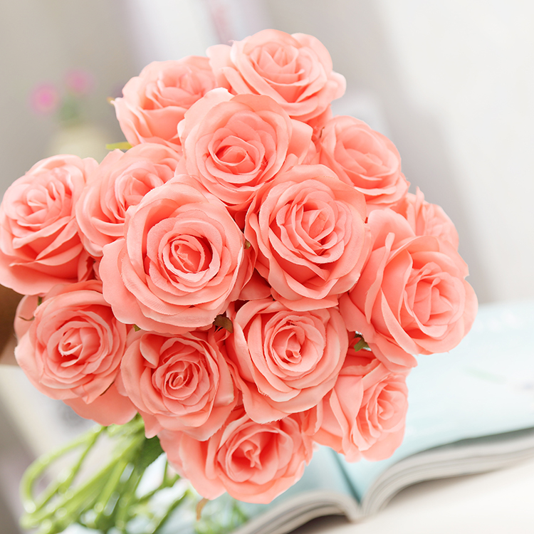 Simulation rose bouquet set plastic flower fake flower single living room decorative flower silk flower flower arrangement
