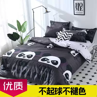 Black quilt cover bed single bed four-piece summer ice silk boys trend style student dormitory three-piece single