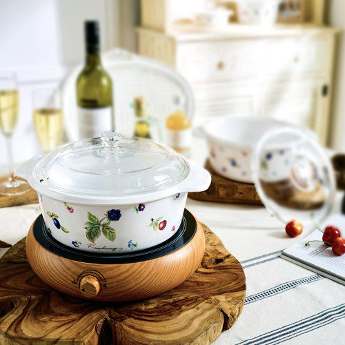 South Korea imported black fruit ceramic soup pot heat-resistant cooking soup pot household cooking pot glass lid soup pot cooking soup pot 3L