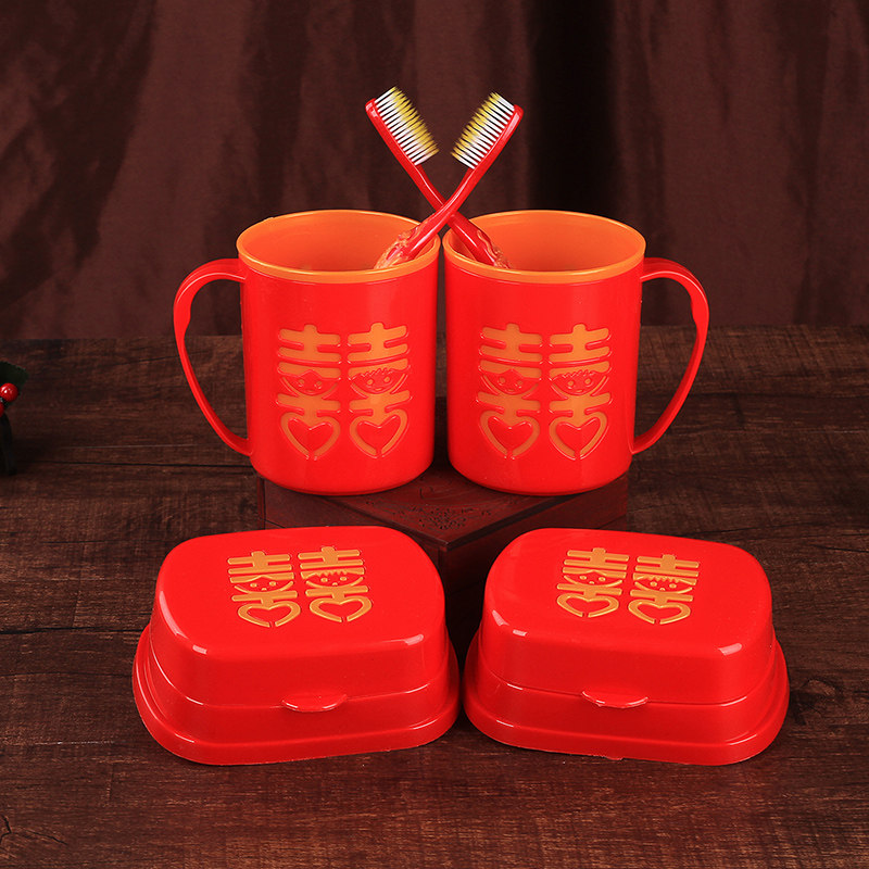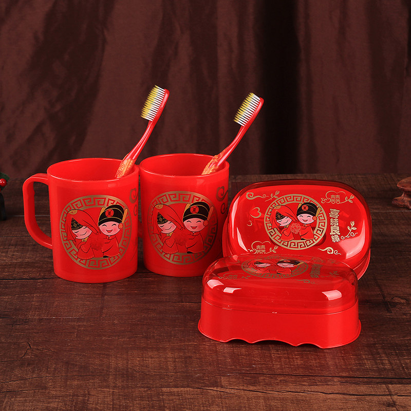 Wedding Celebration Toiletries Suit Wedding Couple Tooth Cup Red Toothbrush Gargle Cup Soap Box Wedding Props