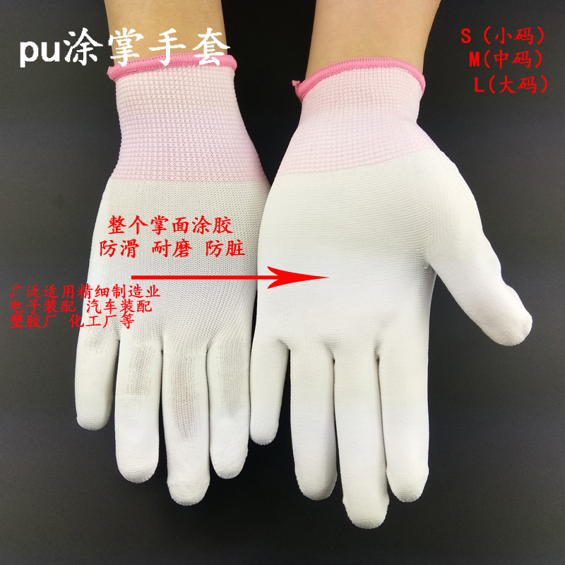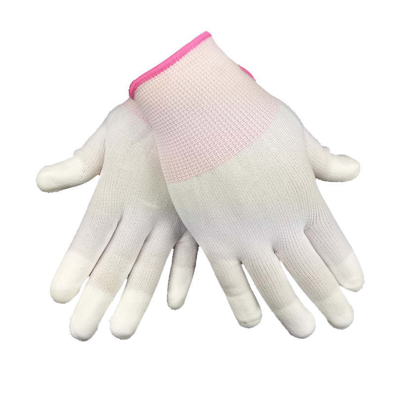 pu-coated finger gloves labor-protective coated palm anti-wear and anti-slip female work breathable nylon coated thin sheet of pure white