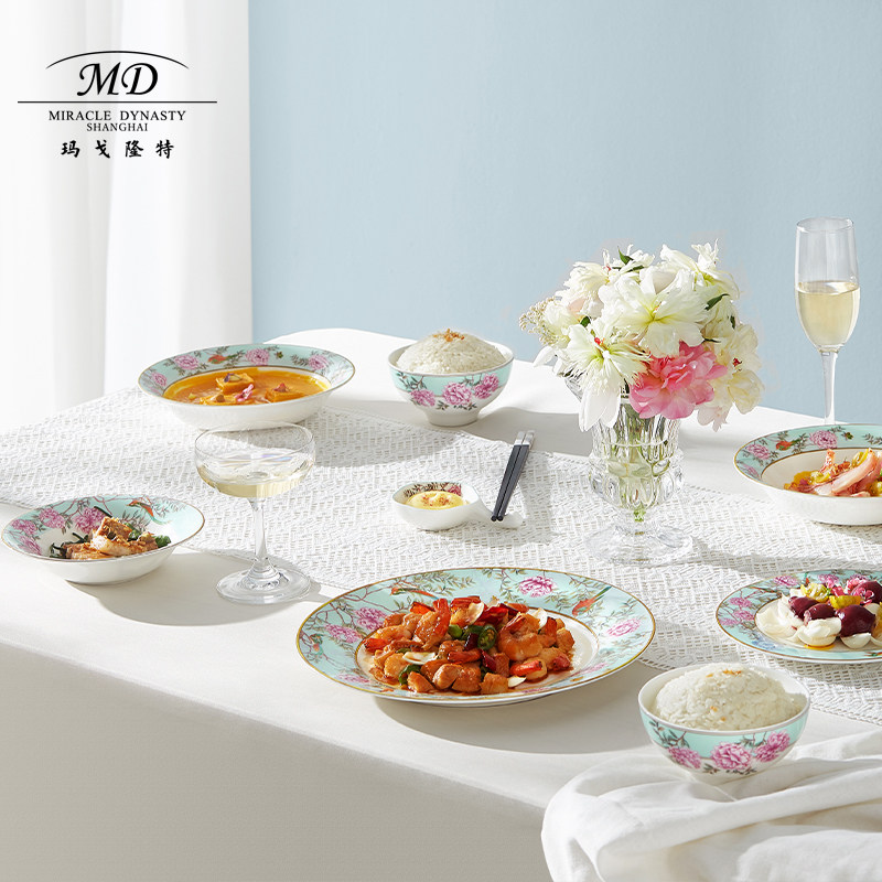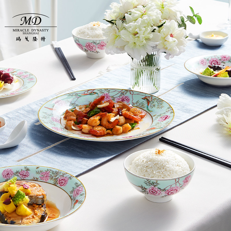 Margolonte 2-4 people Chinese Garden Bone Porcelain Tableware Suit Home Chinese Creativity Light Lavish Bowls Tray Gift Box
