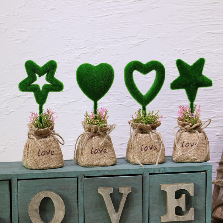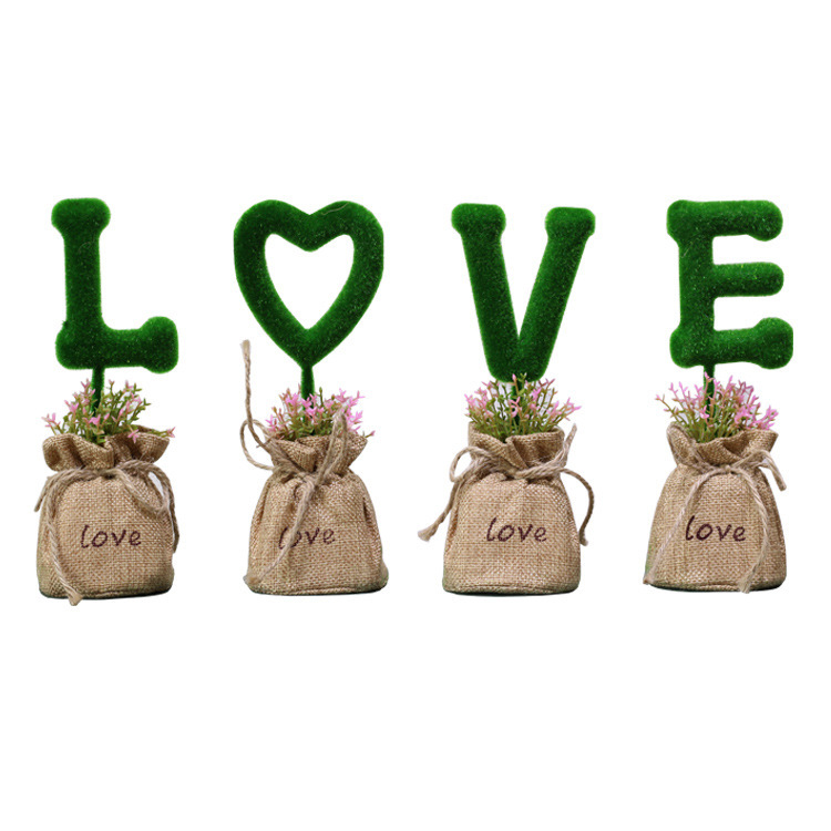 Simulation flower LOVE cloth bag plant potted home Accessories Suit Swing shop office Desktop windowsill Bonsai
