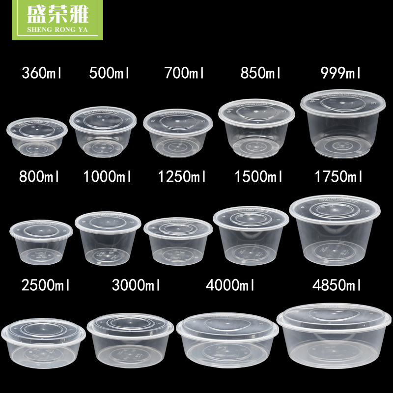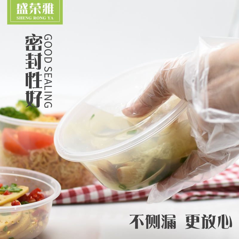 Sheng Rongya round disposable soup bowl with lid for delivery leak-proof sealed disposable packaging box transparent plastic bowl