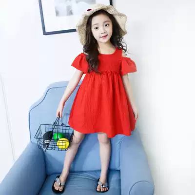Girls strapless suspenders skirt summer 2019 new children princess dress foreign style cotton holiday skirt Korean version