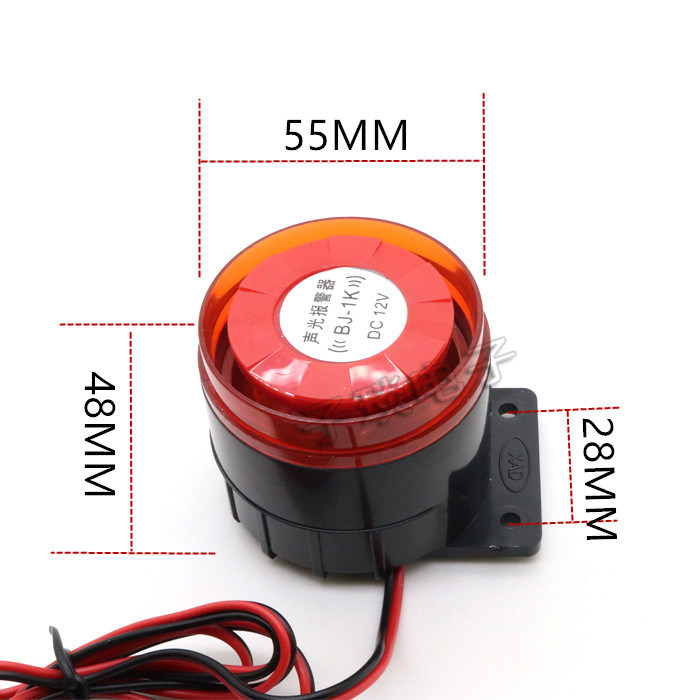 BJ-1K small audible and visual alarm DC12V high decibel sound and light siren horn 120 decibel buzzer