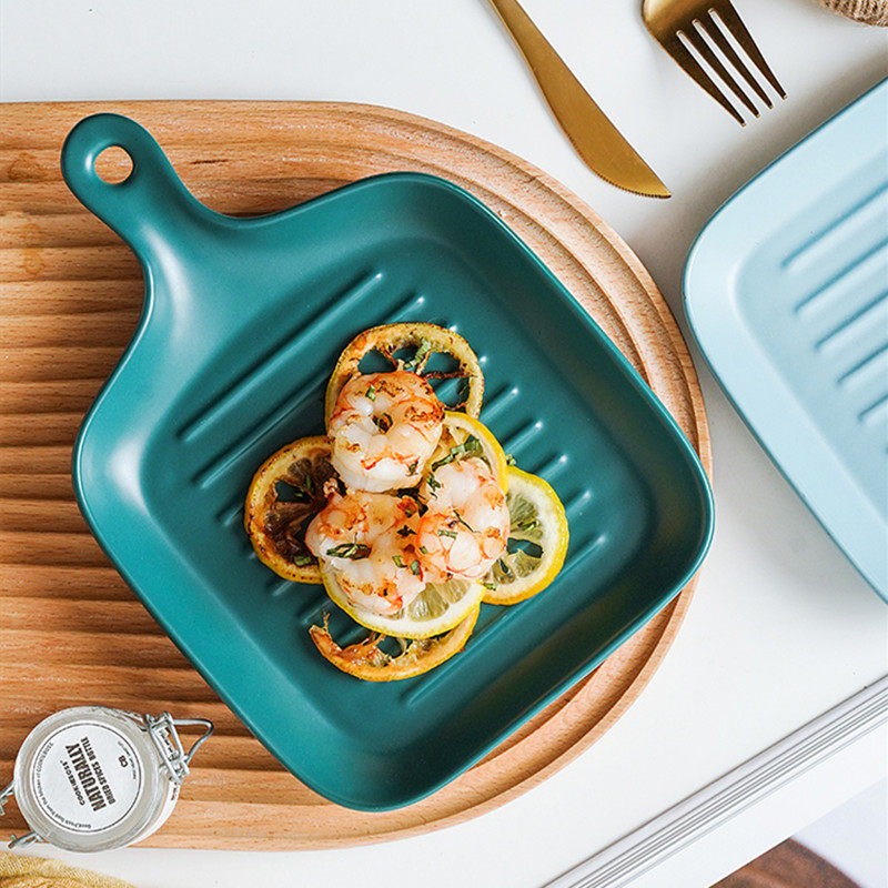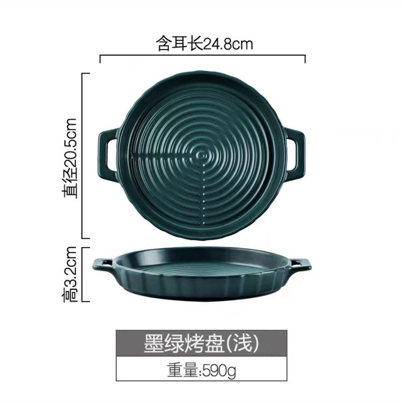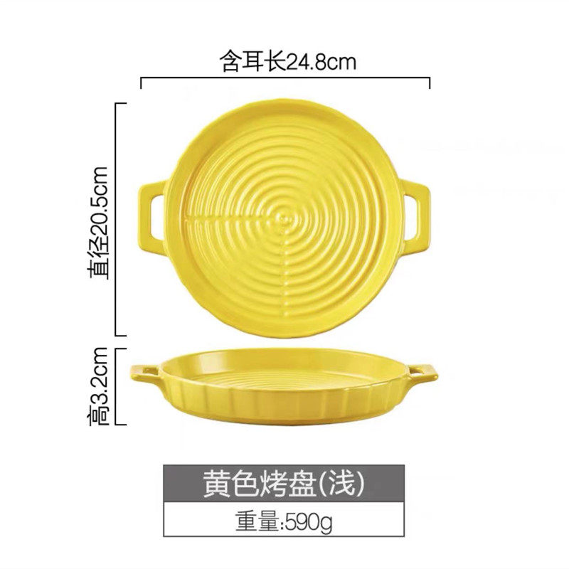Green yellow watermelon red-rose red round 13x6cm oven cake ceramic sharper Nordic single handle yellow square pan powder line foreign trade foreign broth baking pan Nordic single handle square black double ear blue ring grain pizza baking pan double