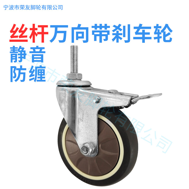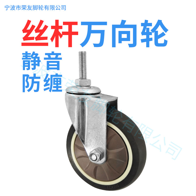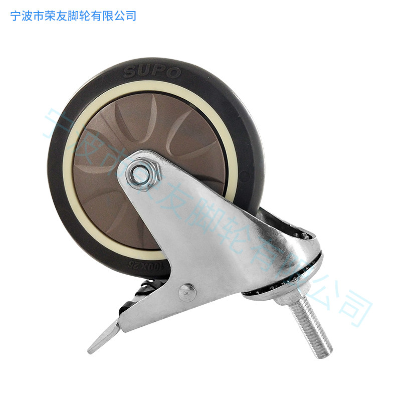 Caster 4 inch artificial glue TPR screw M8 screw M10 universal brake ultra-quiet anti-tangle supermarket shopping wheel