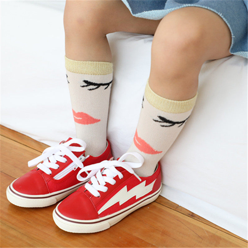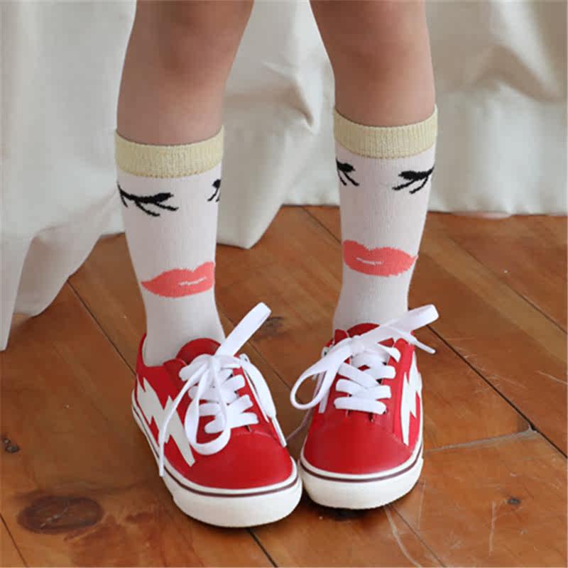 ins spring and summer children socks male and female child eyelashes lips bright silk pure cotton midbarrel socks children's eyes midbarrel socks