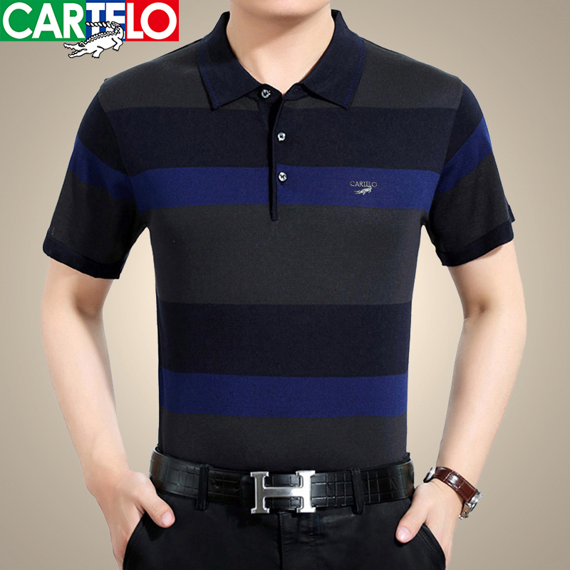 Cardilo Crocodile Short Sleeve T-Shirt Men's Middle-aged 40-50 Years Old Summer Dress Middle-aged and Older Dad's Ice Silk Half Sleeve Shirt