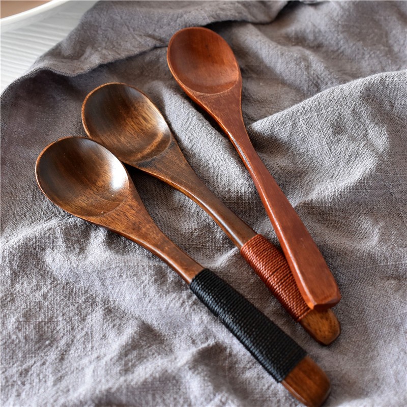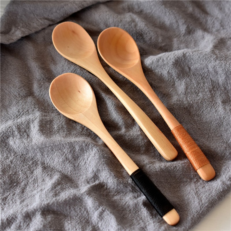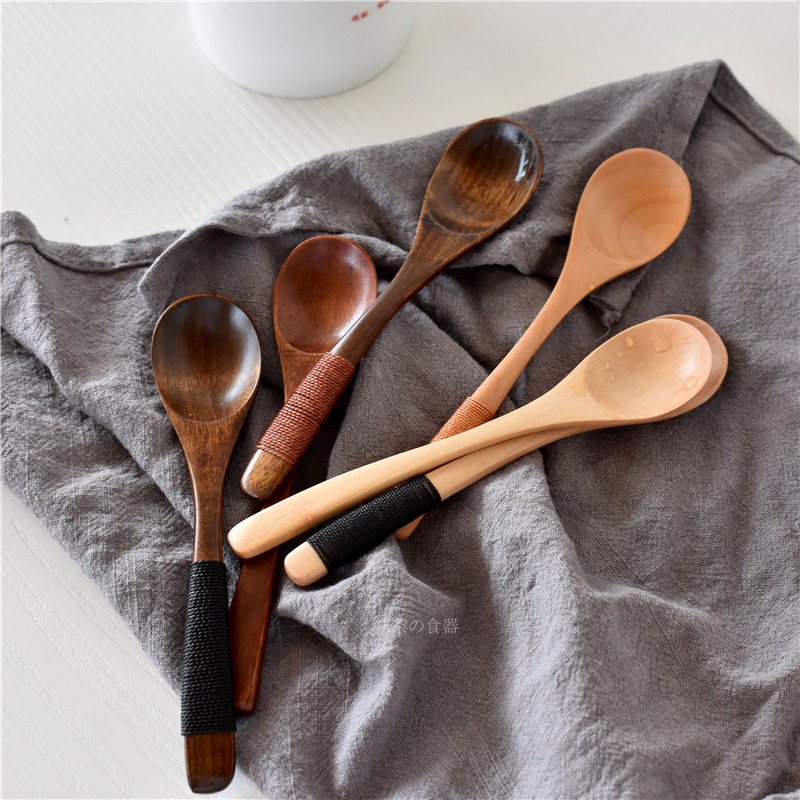 Original wood color small spoon original wood color card with its tangled thread small spoon original wood color black tangled with small spoon dark colored with small spoonful of dark black tangled wire with small spoon