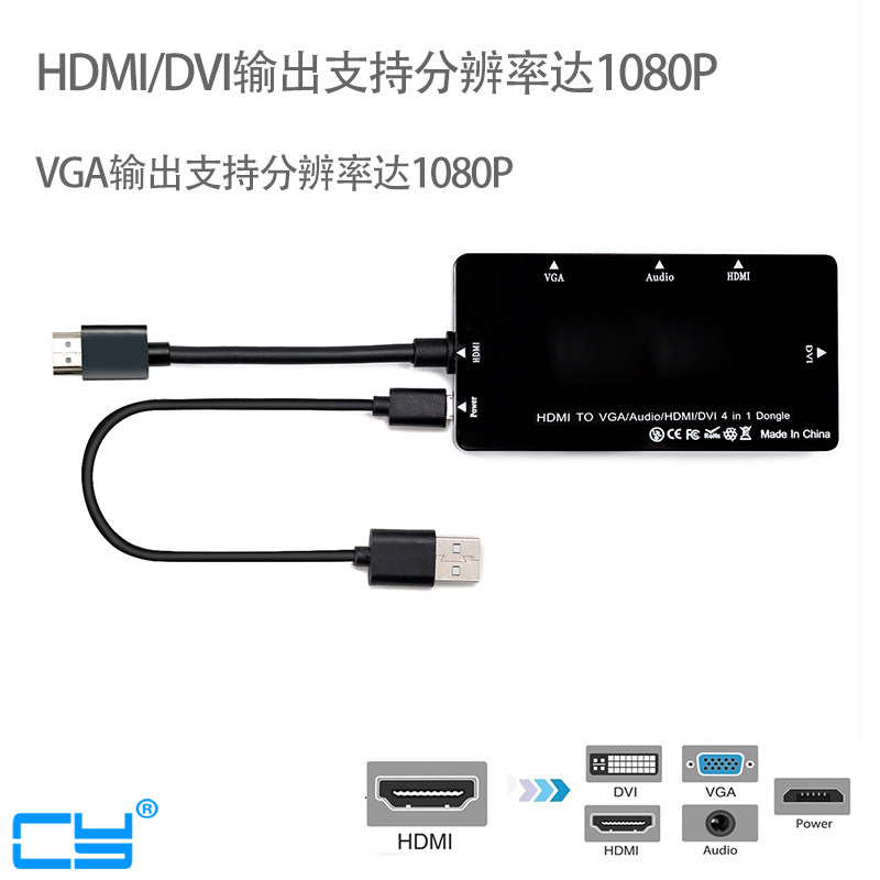 CY Chen balcony machine graphics card notebook HDMI to VGA HDMI DVI sound card 4-in-1 adapter cable with audio