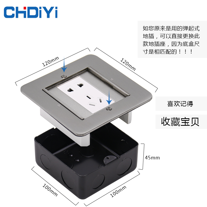 Ground Socket Stainless Steel Double Door Ground Socket Waterproof Concealed Ultra-thin Weak Electric Multifunction Internet Ground Socket