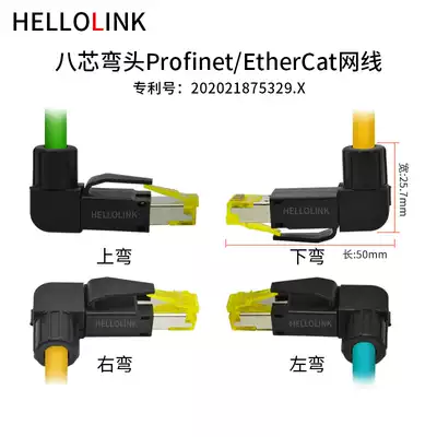 Green sky blue yellow green super five industrial network cable Emerald green economic green One end elbow end straight head Lake blue mobile tow chain use green double end elbow