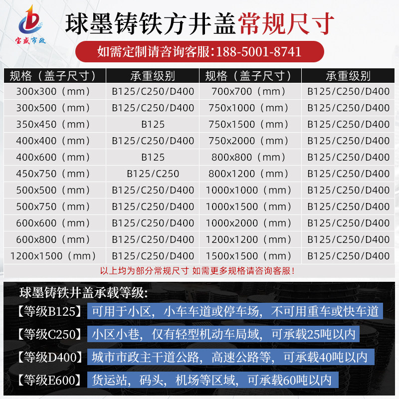 Ductile iron square manhole cover power manhole cover cast iron communication manhole cover rainwater sewage manhole cover weak current manhole cover