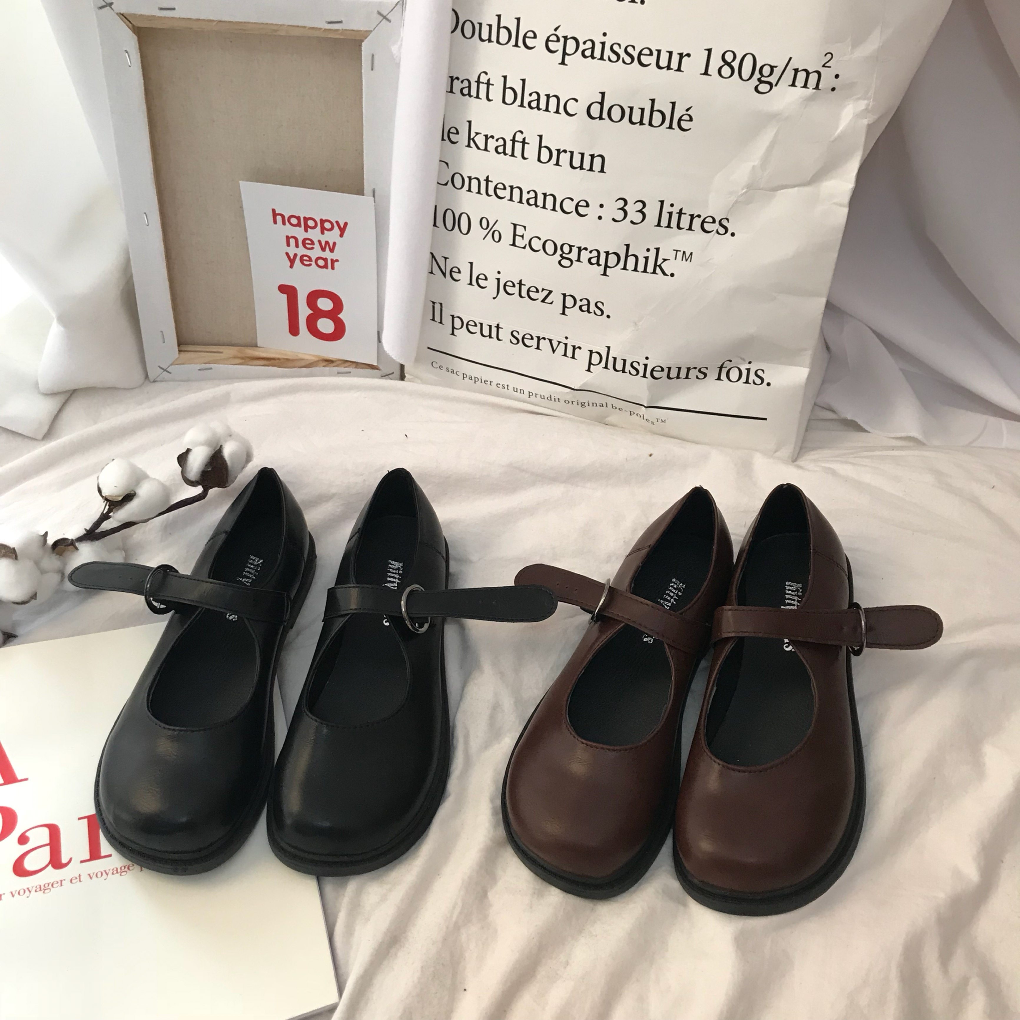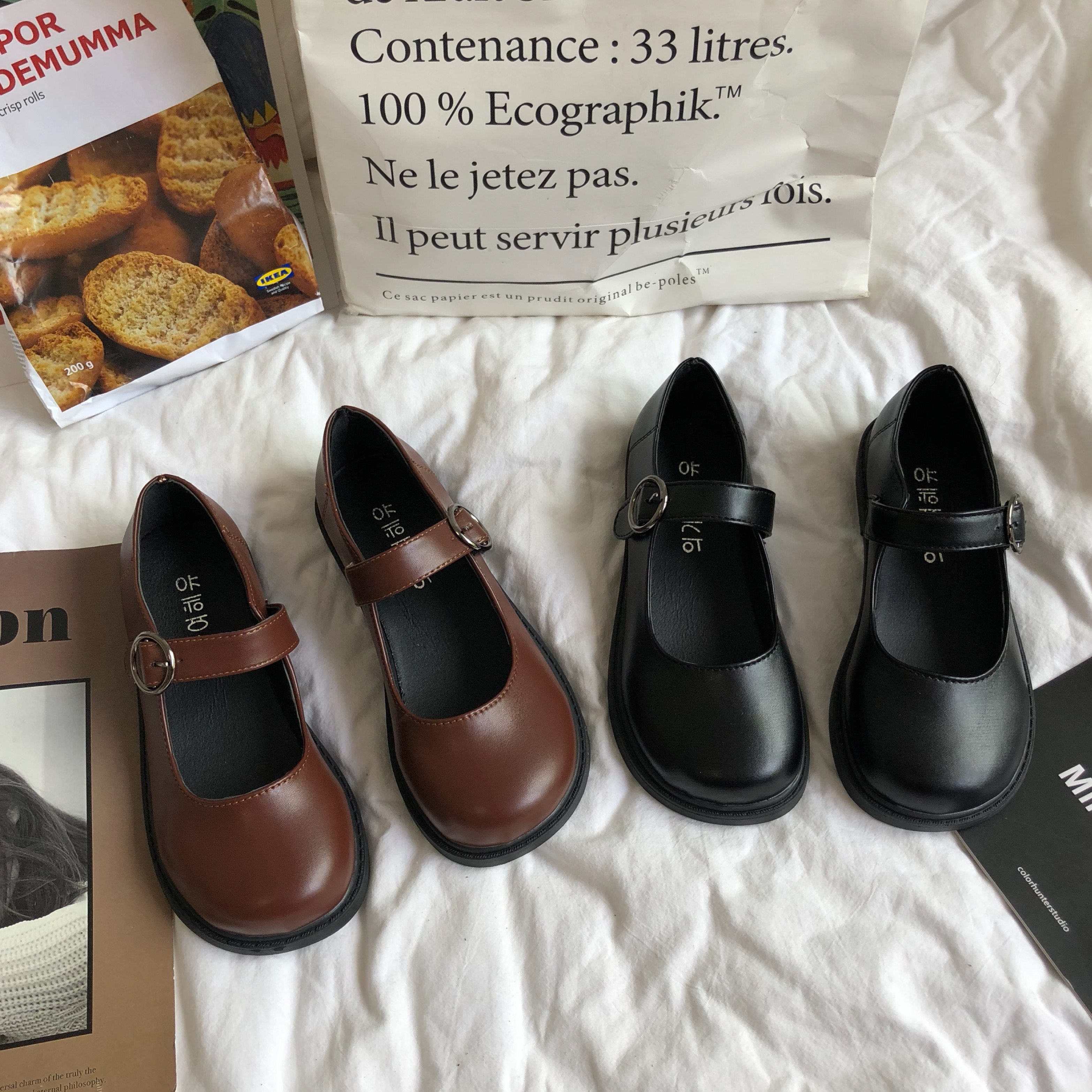 South Korea Ins Marie Treasurys Ancient Single Shoes Women Shoes New Students 100 Hitch Chic Small Leather Shoes Doll Shoes Retro Spring