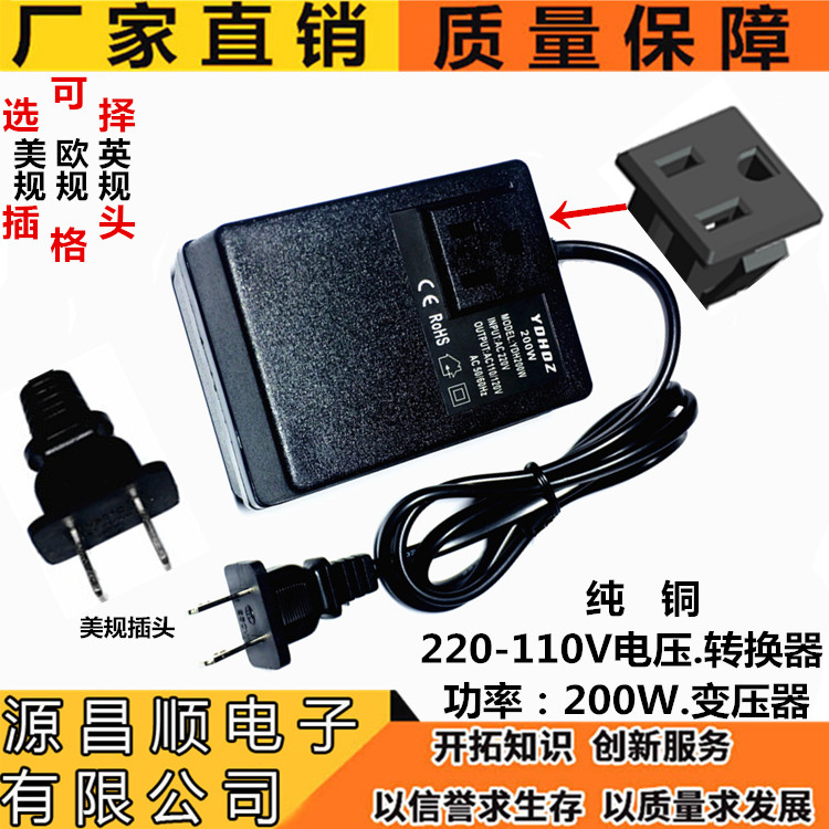 Manufacturer direct sales 220V to 110V power supply converter transformer US-EU gauge 200W high pressure Japanese American electrical appliances