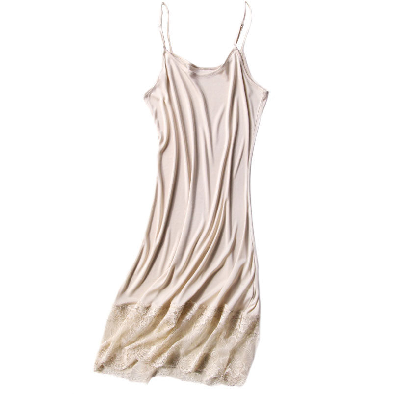 Black Lace Underdress Woman Inside Lap Long Version Sexy Real Silk Pendant With Skirt Woman Xia Han Version Beating Undershirt Sleeping Dress