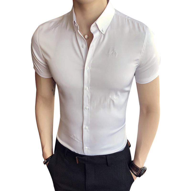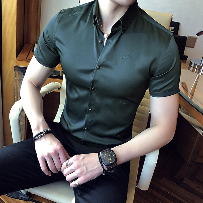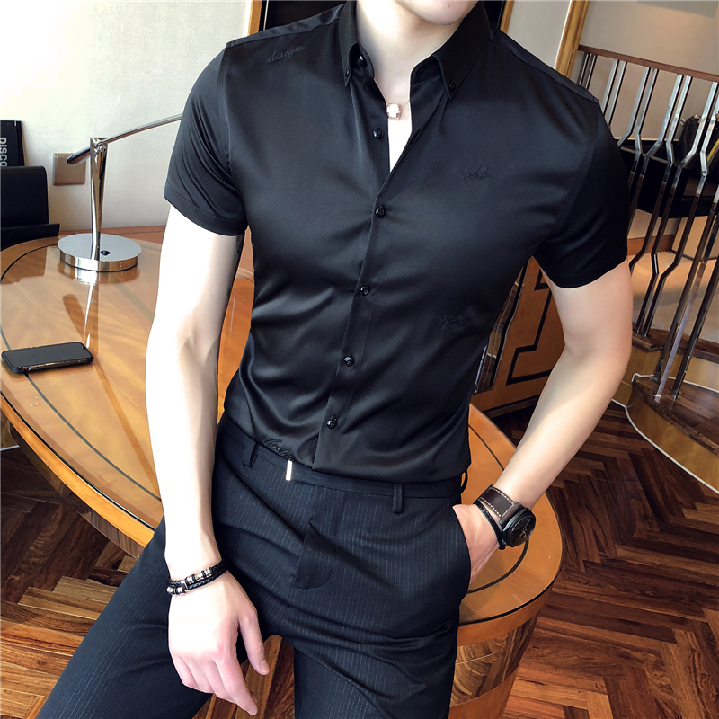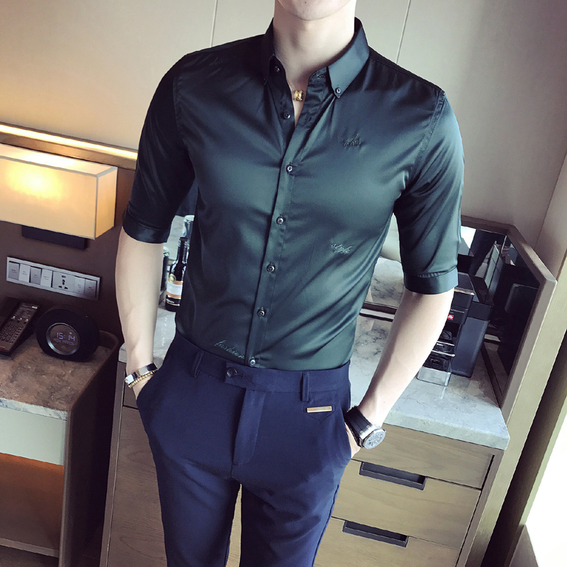 Men's shirt short-sleeved summer Korean version of the trend slim fit handsome and versatile trendy men's casual embroidery free ironing long-sleeved shirt