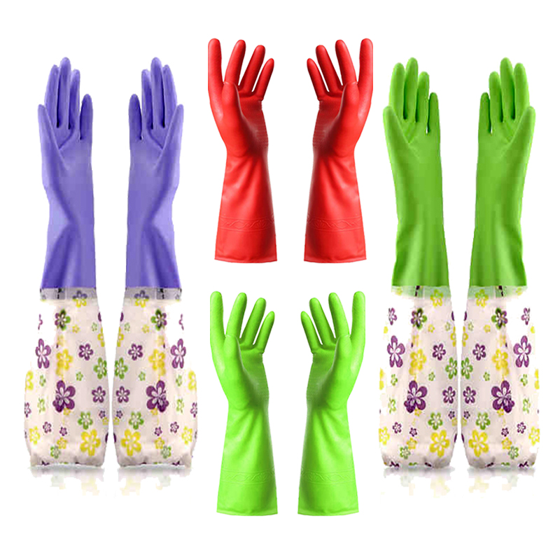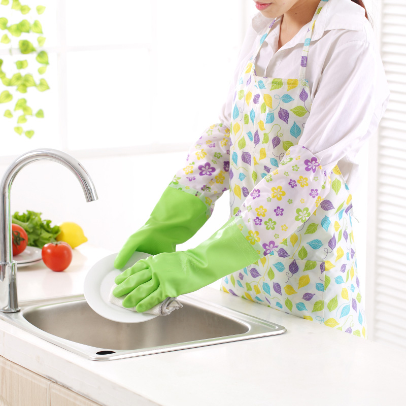 Velvet dishwashing gloves thickened rubber washing clothes rubber winter women's plastic kitchen latex housework waterproof