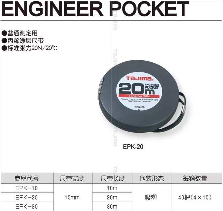 Tajima Tajima measuring disc hand pocket long steel tape measure 10 meters 20 meters 30 meters EPK scale