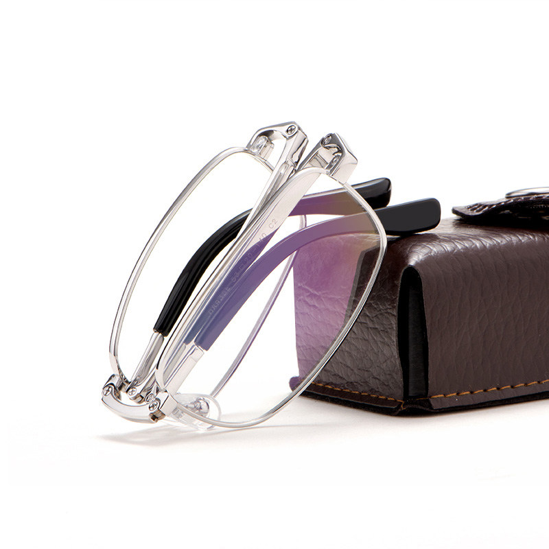 Pure titanium anti-blue light progressive multi-focal old flower glasses male and near dual-use female discoloration portable folding and old flowers ultra light