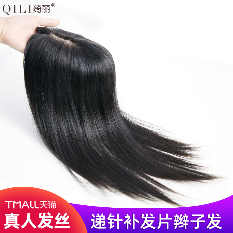 Qili hand needle top replacement piece braid real hair ancient costume wig women's long hair one piece of white hair cover white hair in the elderly