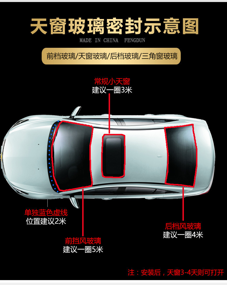 Small sunroof (3 meters) Front windshield (5 meters) Rear windshield (5 meters) Panoramic sunroof (7 meters) The price of one meter(need a few meters to shoot a few pieces)