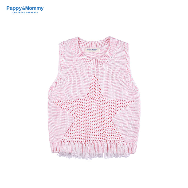 pappymommy baby knitted cotton vest spring and autumn women's treasure hollow tassel vest children's round neck pullover