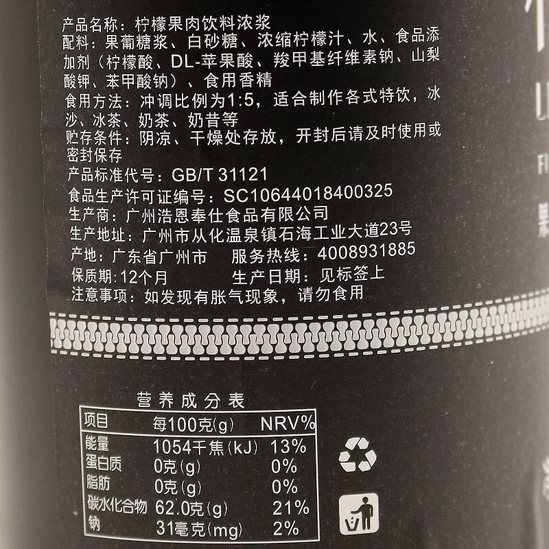 Fruit Glucosyrup White Sugar Concentrated Lemon Juice Water Food Additives