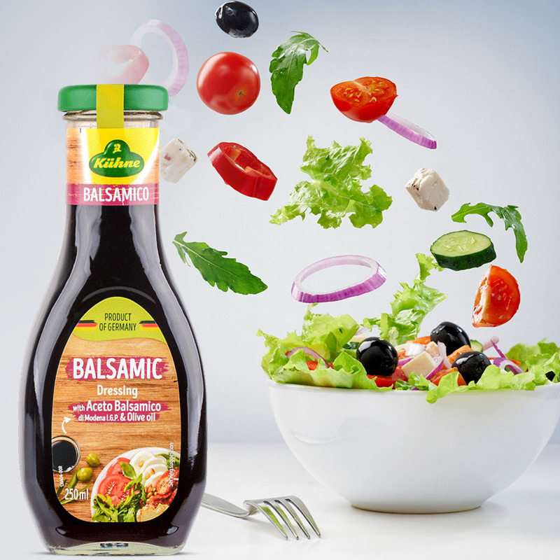 Salad seasoned with salad dressing (balsamic vinegar)