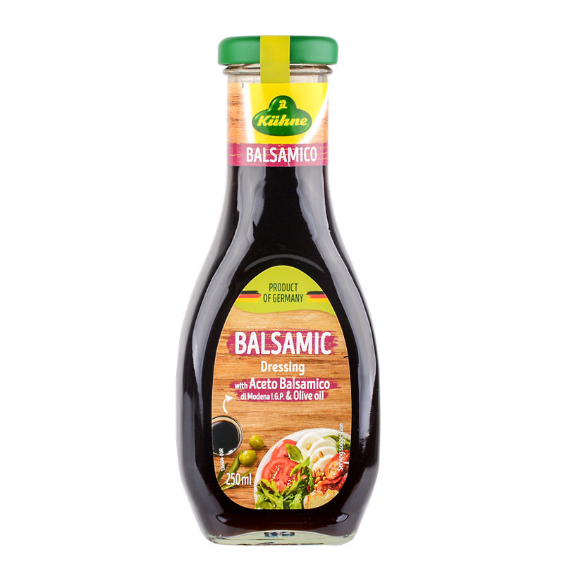 Water balsamic vinegar (wine vinegar (grape) concentrated grape juice) fruit high fructose corn syrup seed oil edible salt concentrated grape juice white sugar olive oil acetic acid sodium caramelebean gum