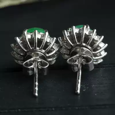 Quarrying Weng 18K gold inlaid jade ice type jade ear needle Lady simple jade ear decoration fashion jade ear needle