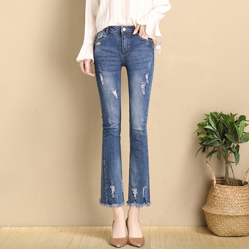 Breaking Hole Microlao Jeans Female Summer Thin 2022 new 2021 High waist small sub 90% straight drum Trumpet Female Pants
