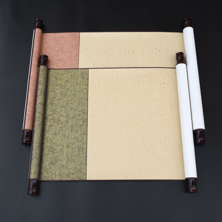 Jin Ayao Biaxial Scroll Cut paper Calligraphy Country Painting Display framed blank Xuan paper painting shaft can hold the banner