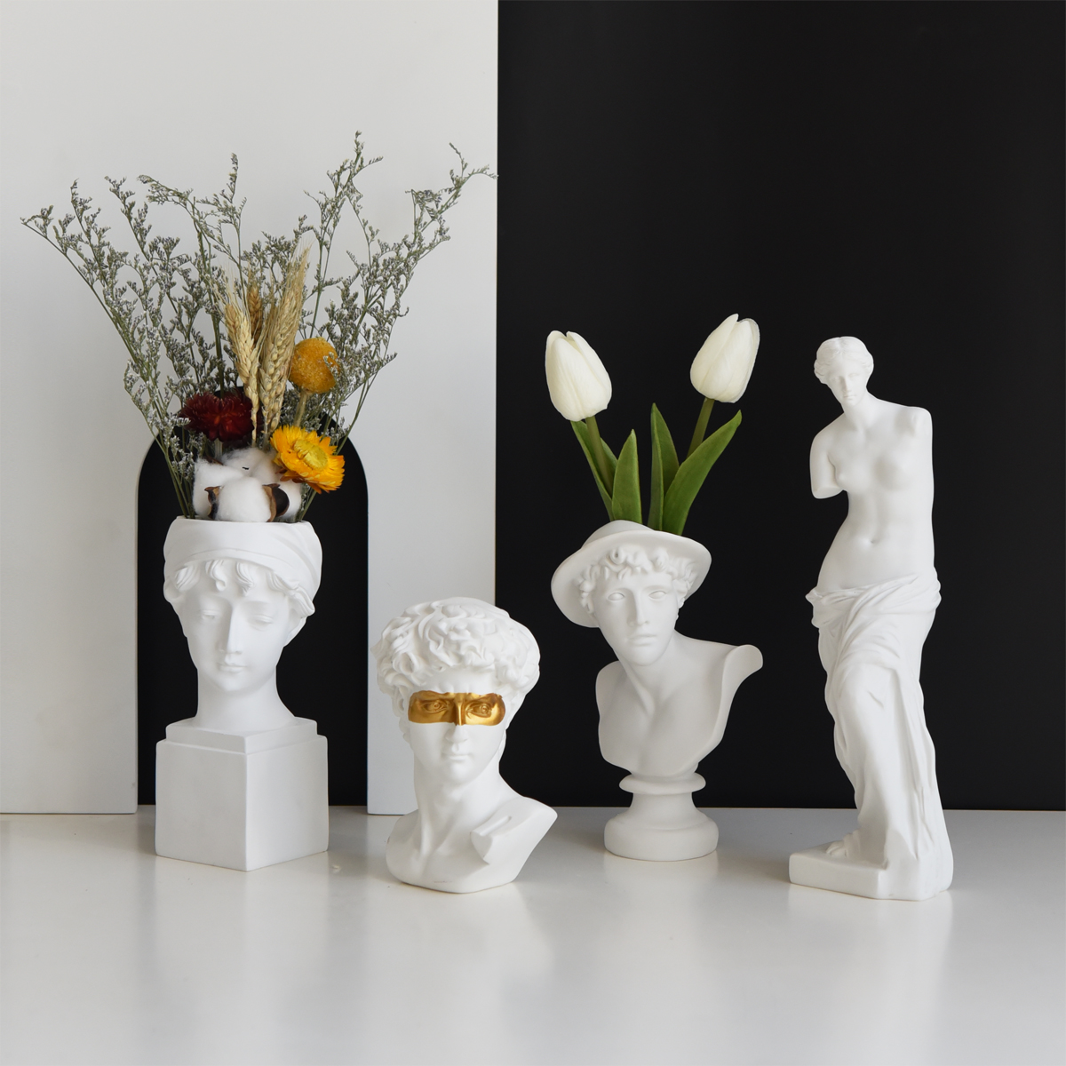 Golden Eyed David Golden Eye Wicking (White) Goddess (White) Goddess (White) Broken Arm Venus David Apollo Silence Is Golden (White) Athena Shepherd (With Tulip) David (With Dried Flowers) Mozza