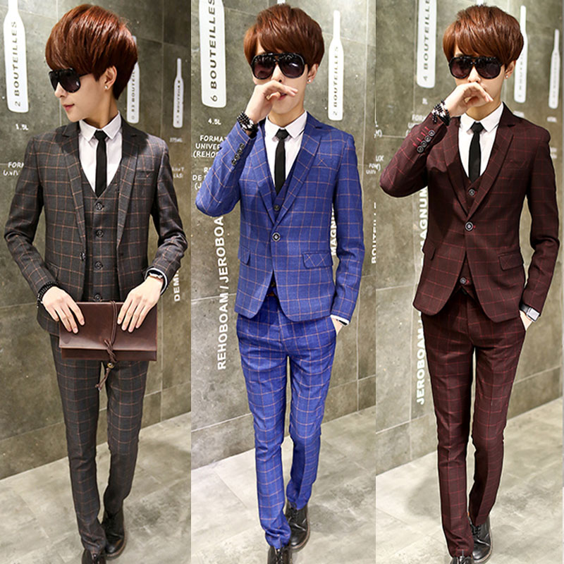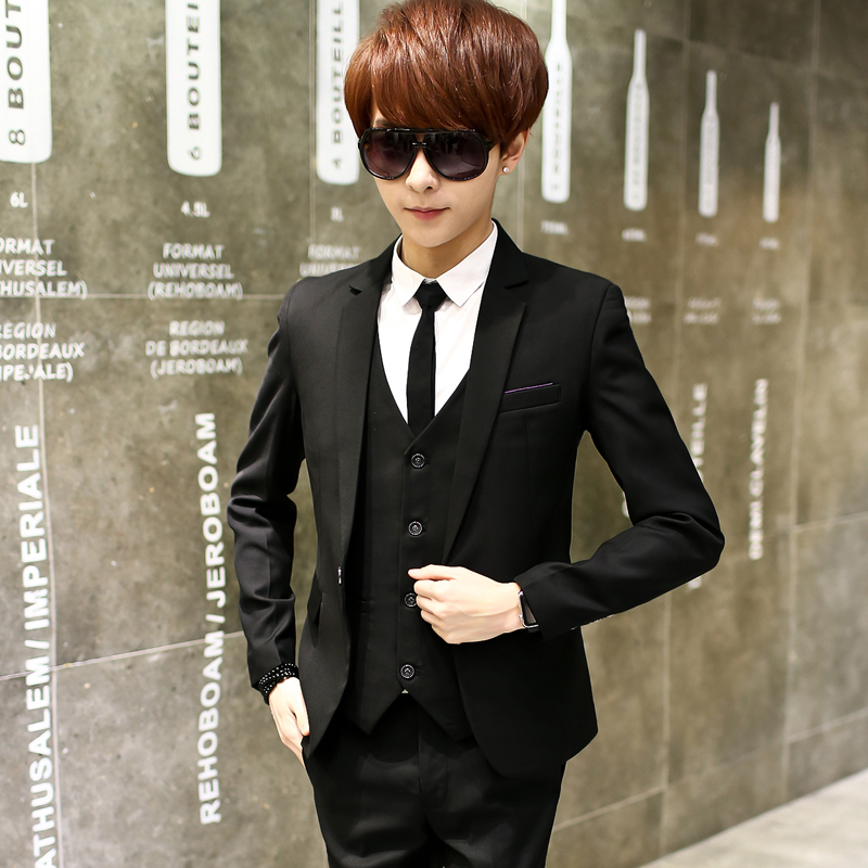 Western suit suit men's body Han version small suit casual jacket men's three sets of bridegroom to serve trendy youth nightfield