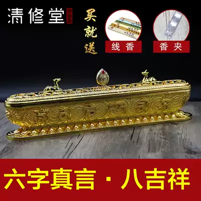 Household supply for Buddha line incense burner copper alloy Tibetan incense burner ornaments double Deer Hollow pure copper eight auspicious lying incense burner