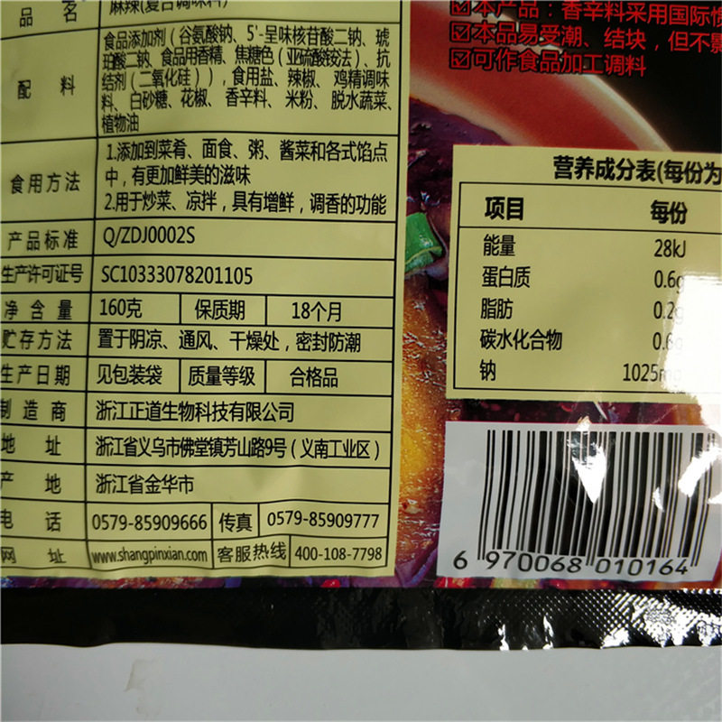 (10 bags per serving) 160g top-grade fresh spicy seasoning for soup, stir-fry, hot pot, barbecue and cold salad