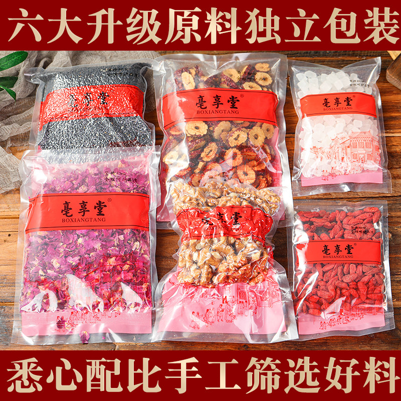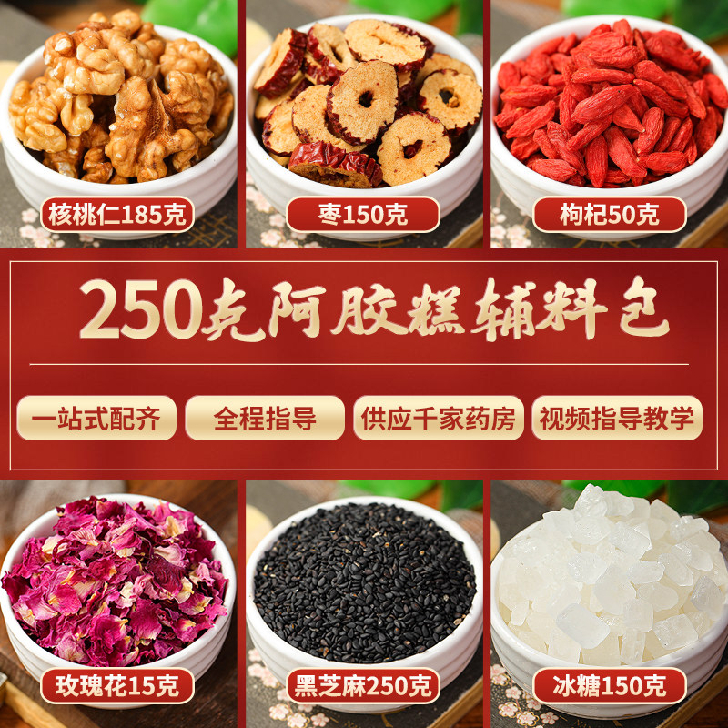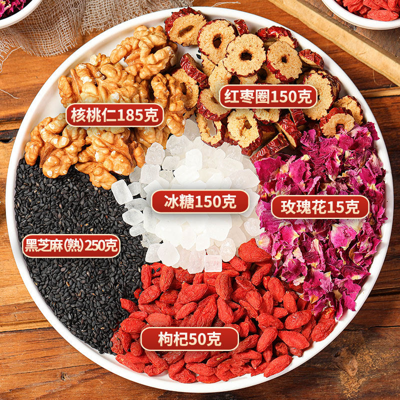 Walnut black sesame ice glacium wolfberry red date rose petals