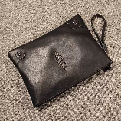 Japan and South Korea trend handbag men's 2018 new large-capacity soft leather rivet clutch fashion one-shoulder messenger bag casual