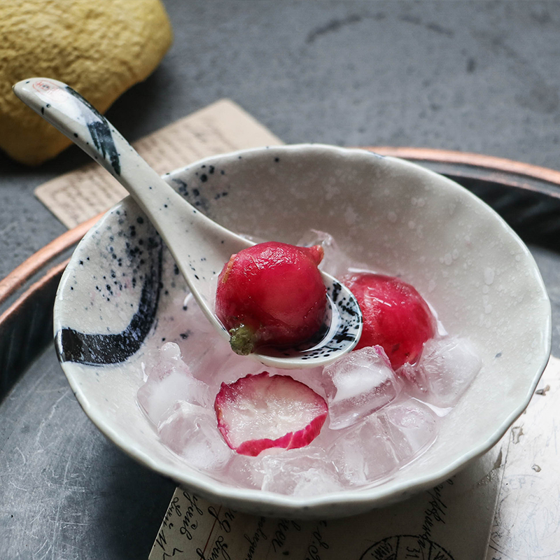 Bellflower home Japanese ceramic spoon White soup spoon spoon soup porridge spoon Drink soup safe underglaze color tableware Japanese spoon