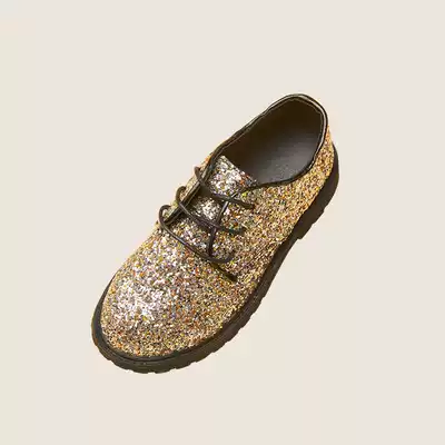 Black cowhide carved leather shoes Gold sequined leather shoes