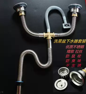 Kitchen stainless steel washing basin, water pipe, sink pool, double sink water accessories, anti-odor and anti-rat bite