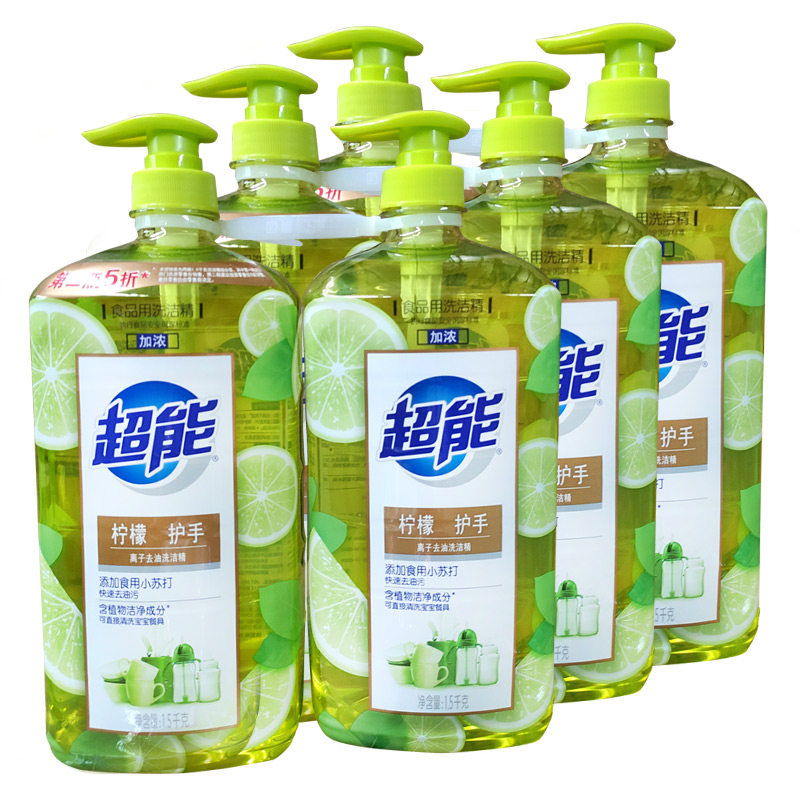 6 bottles of whole box batch 1 5kg Super ion de-oiling detergent lemon hand guard kitchen dishwashing does not hurt the hand Family pack